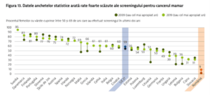 - Deși programele de screening pot reduce mortalitatea cu 20-40%, România nu beneficiază în prezent de un program național de screening pentru cancerul de sân;